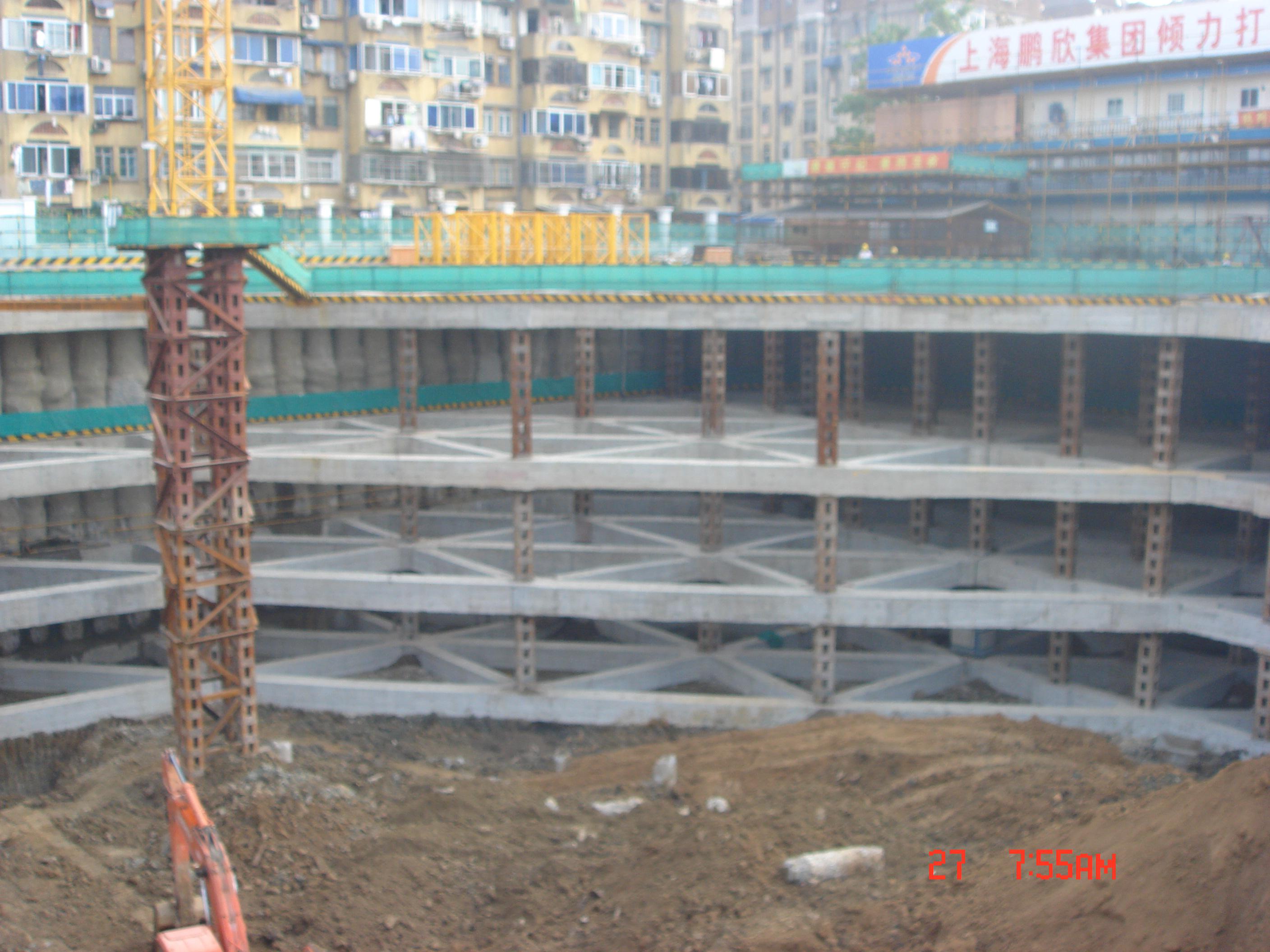 項(xiàng)目位于建康路和中華路交界處東北角,南京外運(yùn)大廈南側(cè)。工程主樓為3幢15~16層,裙樓4~5層,整體設(shè)有4層地下室,基坑南北長170m,東西寬140m,基坑圍長608m,開挖深度20m。采用鉆孔灌注樁+4層砼支撐的支護(hù)形式,坑外施工三軸深層攪拌樁作為止水帷,基坑支護(hù)結(jié)構(gòu)的安全等級(jí)為"一級(jí)"。南京市優(yōu)秀工程測(cè)繪一等獎(jiǎng),江蘇省城鄉(xiāng)建設(shè)系統(tǒng)優(yōu)秀勘察設(shè)計(jì)二等獎(jiǎng),江蘇省第十二屆優(yōu)秀工程勘察二等獎(jiǎng)。