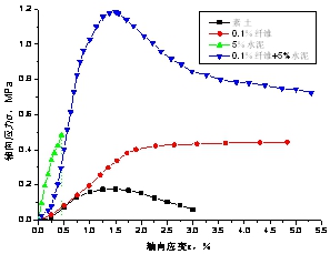該技術(shù)通過將離散的短纖維絲(人工合成或者天然植物纖維)均勻摻入土體中,通過纖維和土顆粒之間的界面力學(xué)作用及纖維的拉筋作用,達(dá)到顯著提高土體的工程力學(xué)性能的目的。同傳統(tǒng)技術(shù)相比,該技術(shù)的具有如下優(yōu)勢:(1)纖維與土體作用屬于物理過程,不改變土體的自然屬性,綠色環(huán)保;(2)纖維在土體中隨機分布,具有三維加筋作用,土體加固后具有各向同性特點;(3)纖維加筋的施工工藝簡單,工程性價比較高;(4)纖維加筋不僅具有顯著的增強效果,還能有效抑制土體破壞裂隙的發(fā)育。